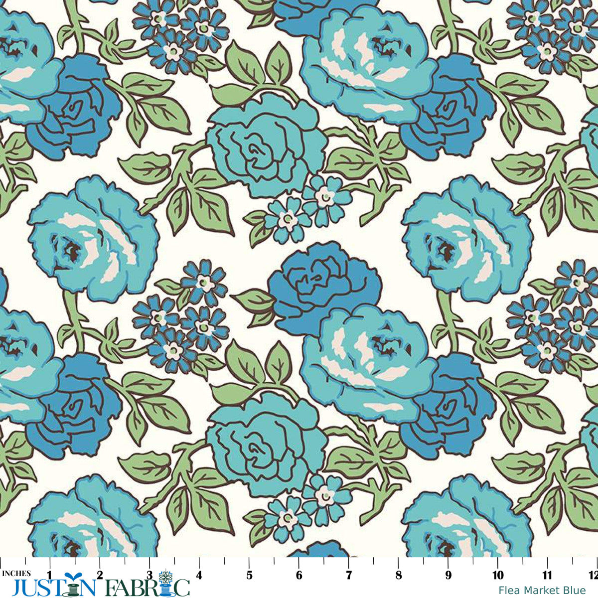 The Flea Market Wide Back Blue Yardage fabric combines high-quality material with delightful designs, ensuring your projects are both beautiful and durable.