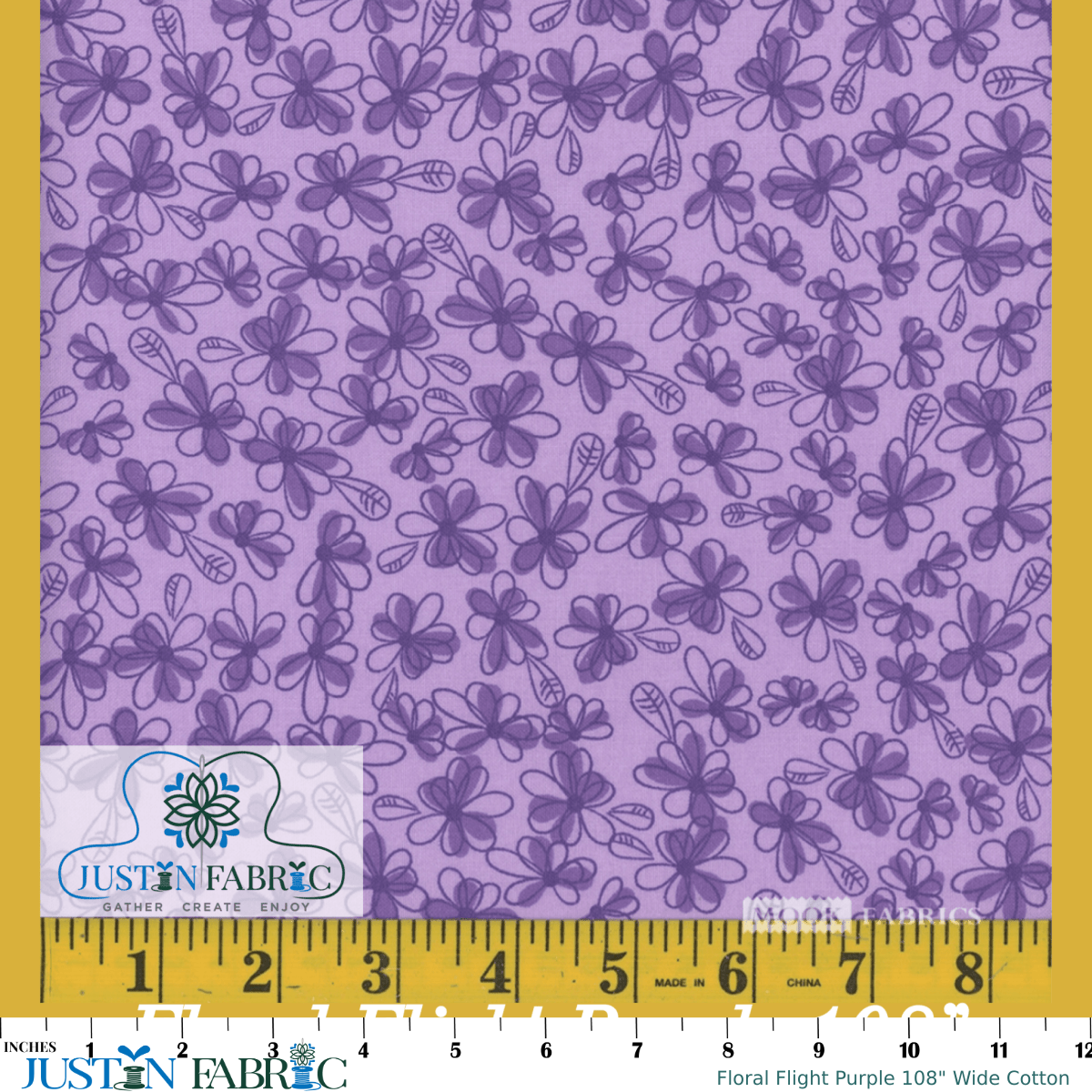 Discover the luxurious feel of Floral Flight Purple 108" Wide Cotton, designed by Mook Fabrics. This fabric combines vibrant floral prints with a smooth, high-quality cotton weave, perfect for quilters and sewing enthusiasts who appreciate both beauty and functionality. Crafted with care, this fabric lends itself beautifully to a variety of quilting and sewing projects.