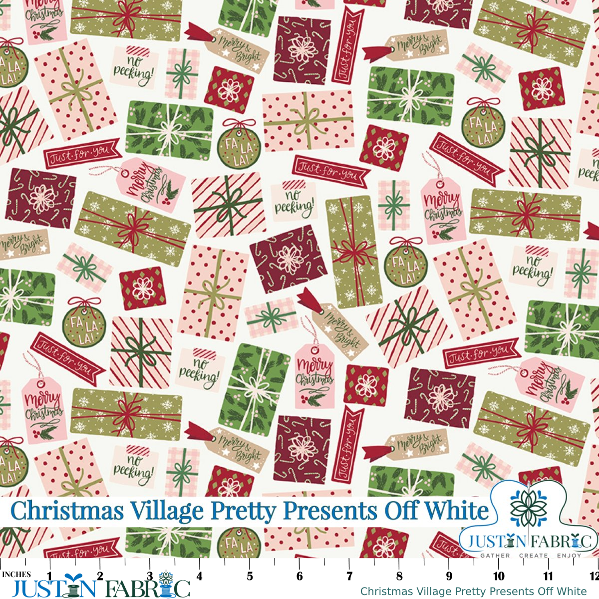Christmas Village Pretty Presents Off White Yardage by Katherine Lenius | Riley Blake Designs