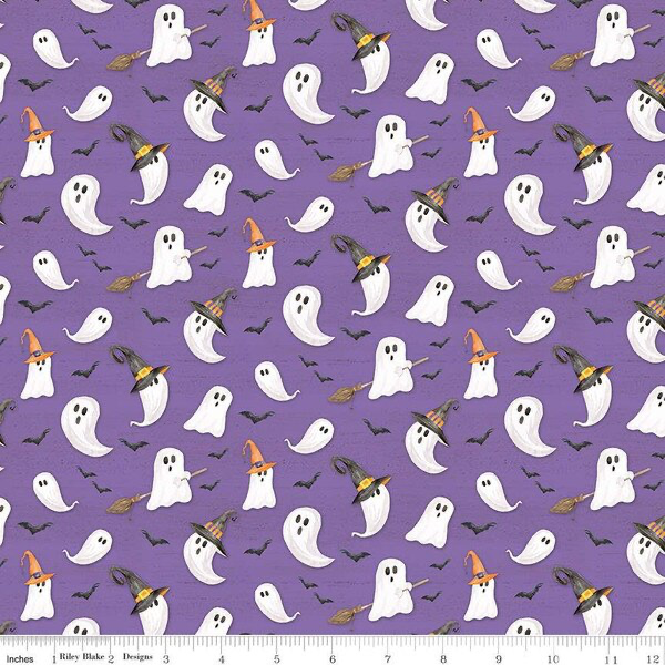 This is a specific coordinating yardage featuring a fun Halloween-themed print (pumpkins, ghosts, etc.) in a bold pu role colorway. Perfect for spooky seasonal projects!