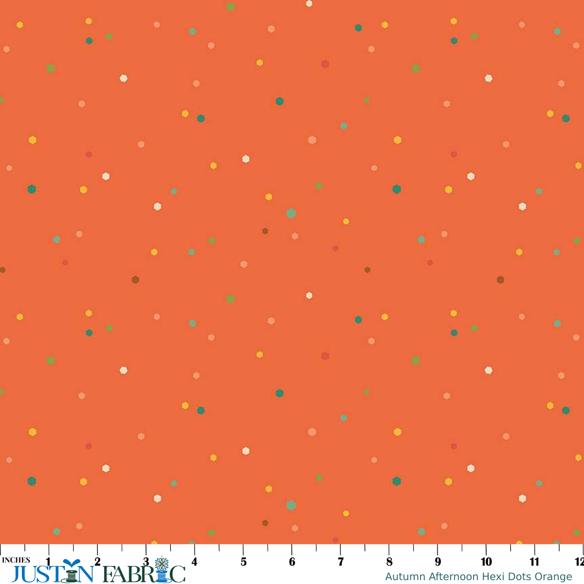 Experience the vibrant charm of Autumn Afternoon Hexi Dots Orange Yardage by Heather Peterson, offered by Riley Blake Designs. This fabric seamlessly combines timeless quilting quality with a warm, seasonal print perfect for your next creative project.