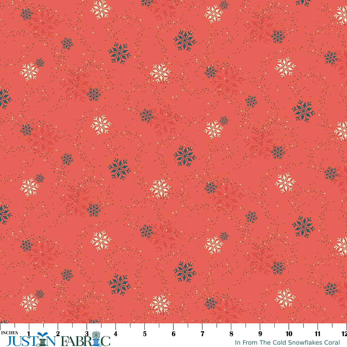 In From The Cold Snowflakes Coral Yardage by Heather Peterson | Riley Blake Designs