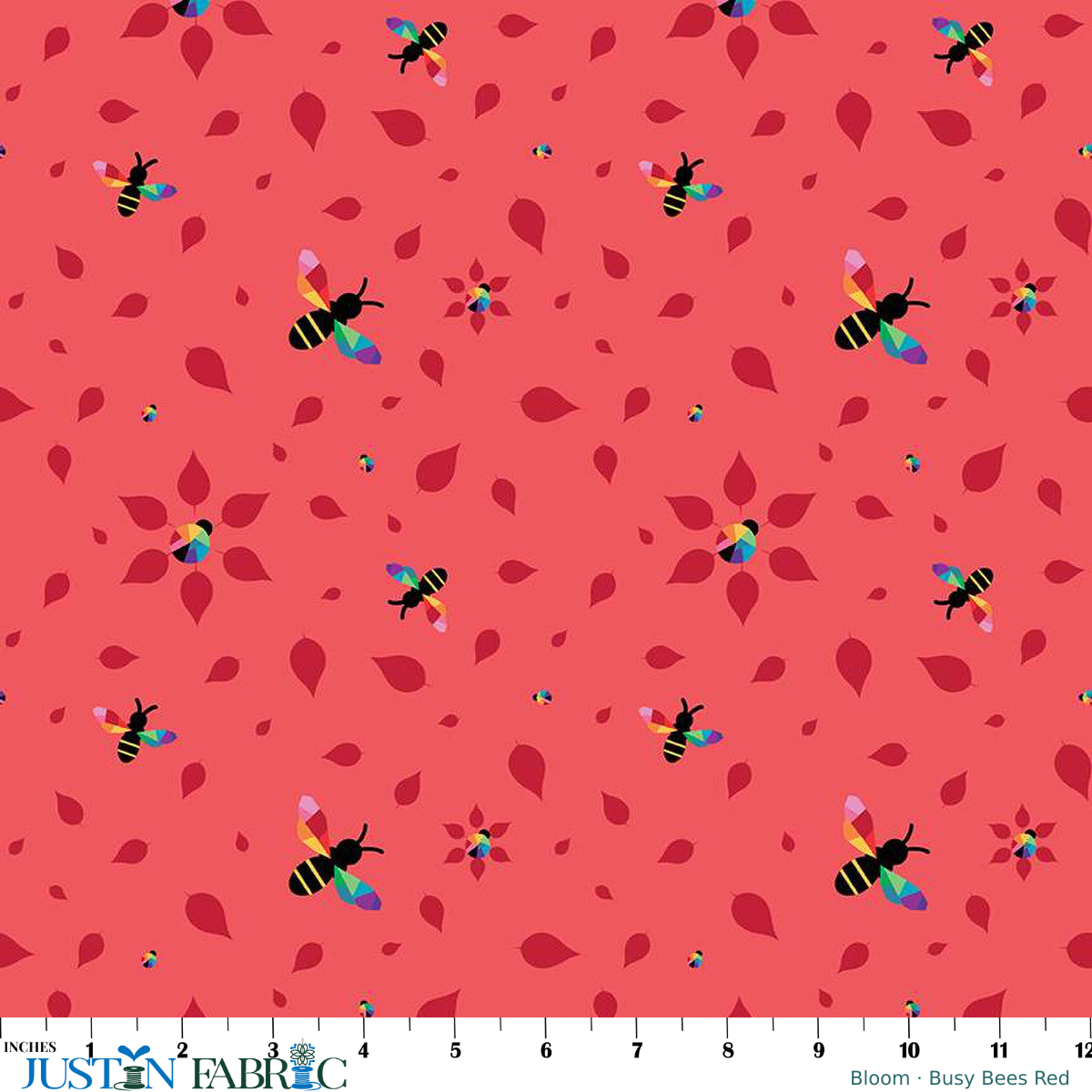 Embrace the whimsical charm of the Busy Bees Red fabric from the Bloom collection by Kristy Lea for Riley Blake Designs. Featuring lively busy bees on a nice red background, this fabric adds a touch of playful elegance to any project.