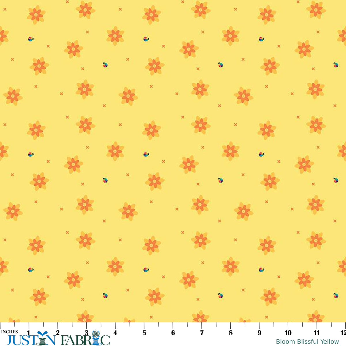 The Bloom Blissful Yellow fabric combines high-quality material with delightful designs, ensuring your projects are both beautiful and durable.