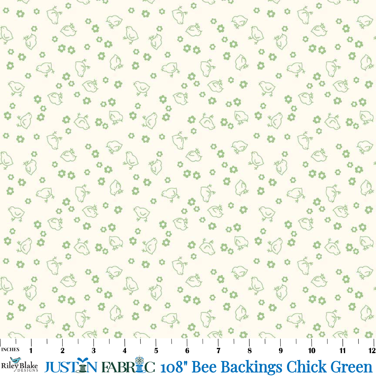 Introducing the Bee Backings and Borders 108” Wide “Chick Green” Yardage by Lori Holt for Riley Blake Designs – a delightful wide-back fabric that brings charm, cheer, and convenience to your quilting projects. This print features adorable green chicks scattered across a soft white background, making it a perfect match for Lori Holt’s signature style and playful collections. With its extra-wide design, this backing eliminates the need for seams and makes finishing your quilt easier than ever.