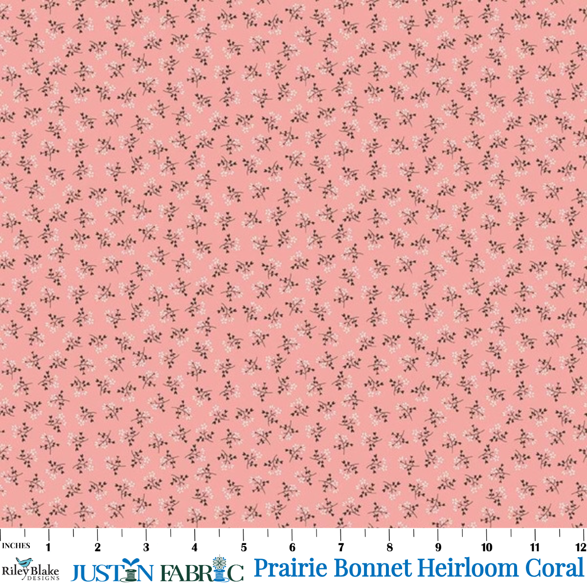 Add a touch of charm to your projects with the Prairie Bonnet Heirloom Coral Yardage . Order now and let your creativity shine with this exceptional fabric from Riley Blake Designs.