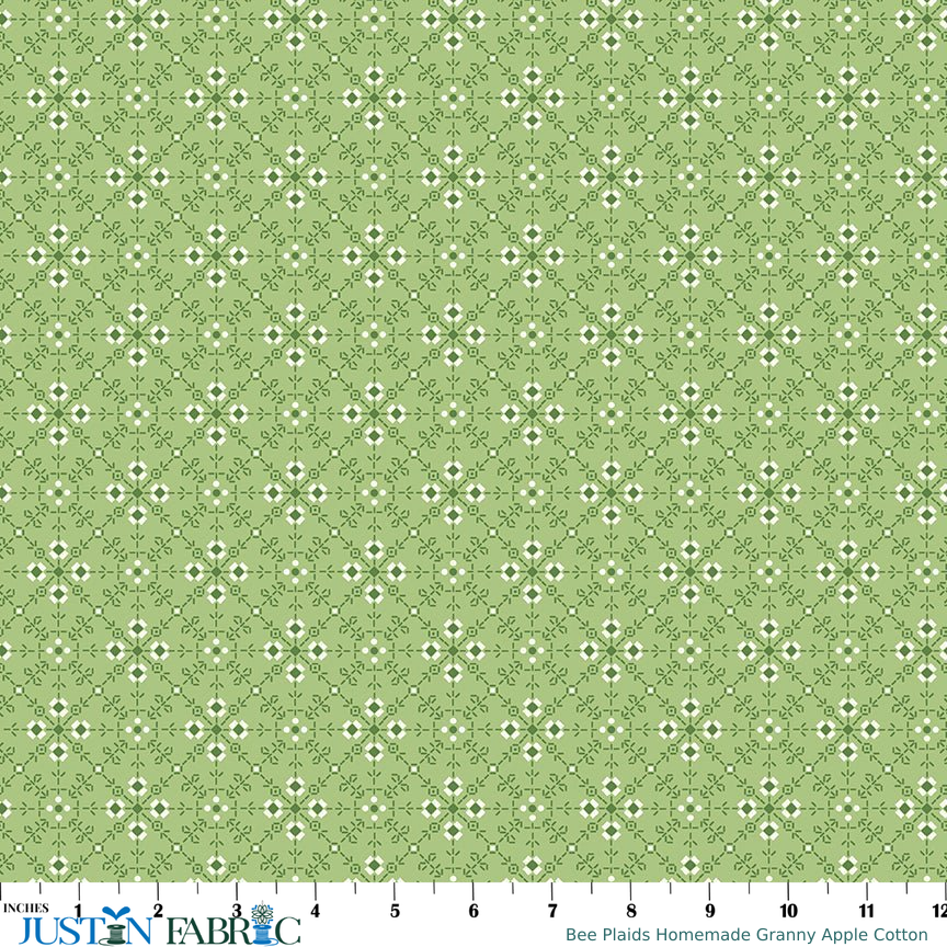Crafted with care, this fabric features a lovely Grannyapple color, showcasing the Bee Plaids Homemade Granny Apple Cotton print. Whether you’re working on quilts, home decor, or other sewing projects, this yardage offers the quality and charm that quilters appreciate.