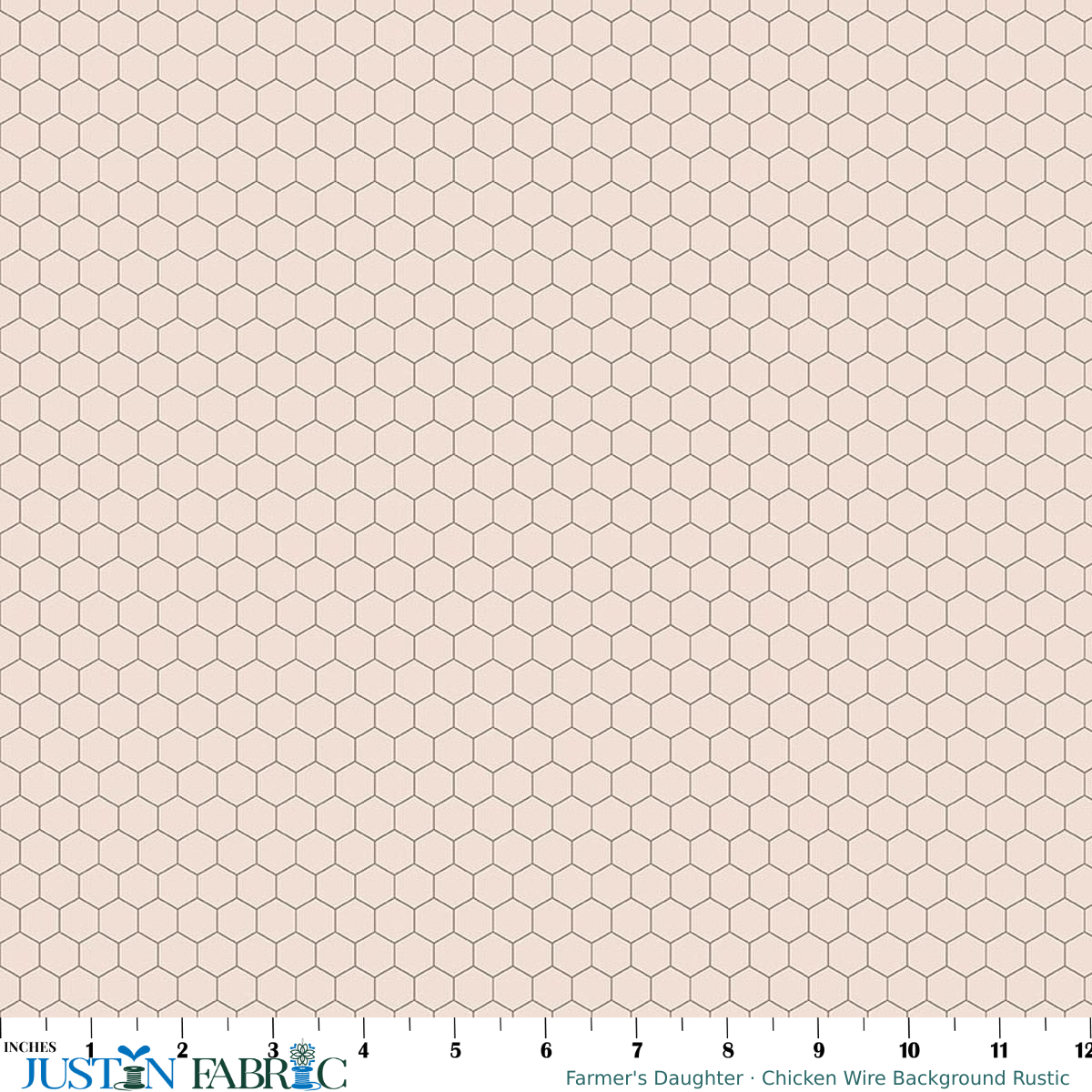 Introducing the Farmer’s Daughter Chicken Wire Background Rustic by Lori Holt for Riley Blake Designs – a timeless farmhouse basic designed to add subtle texture and vintage charm to your projects. Featuring a delicate chicken-wire hexagon pattern on a soft rustic cream background, this print brings the cozy feel of country living to quilts, garments, and home décor.
