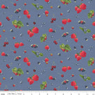A soft denim blue yardage with a cheerful berry toss motif, perfect for a cozy, patriotic summer feel. Great background or sashing for the June Panel.