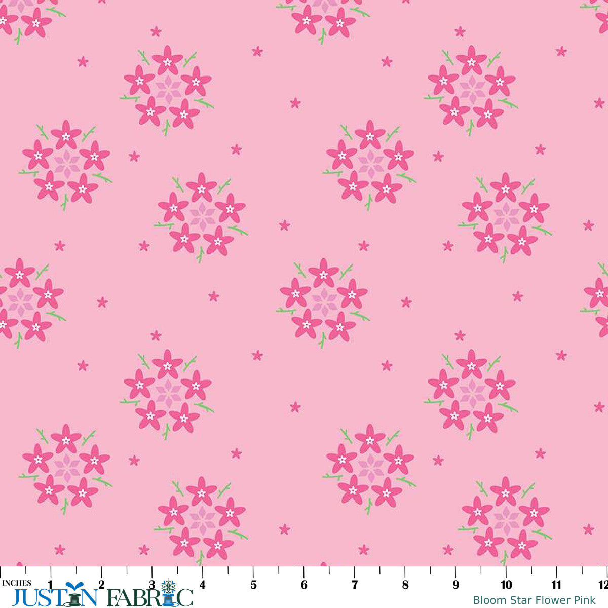 Add a touch of charm to your projects with the Bloom Star Flower Pink Yardage . Order now and let your creativity shine with this exceptional fabric from Riley Blake Designs.
